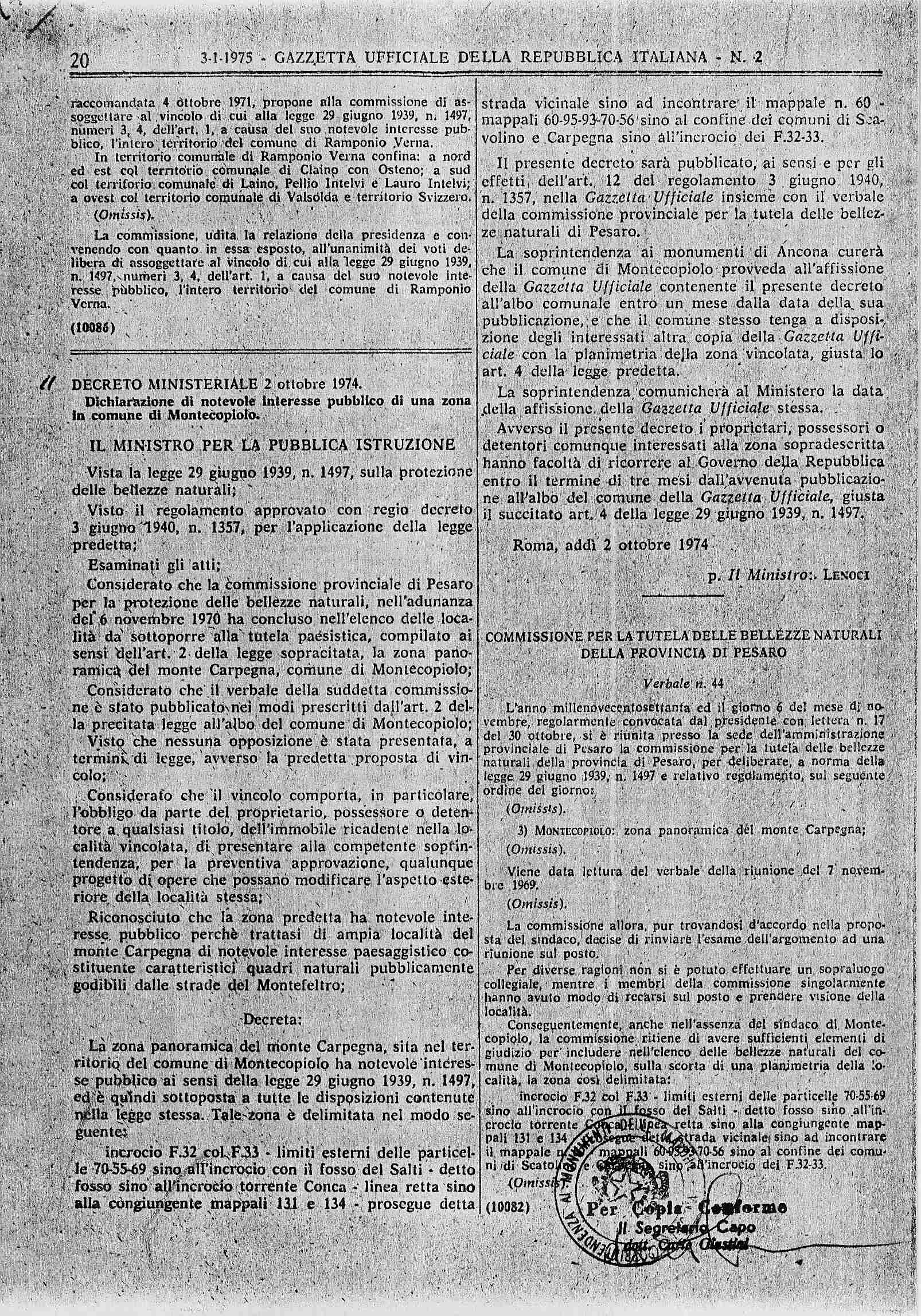 212 | Monte Carpegna | DM del 2/10/1974 | ||